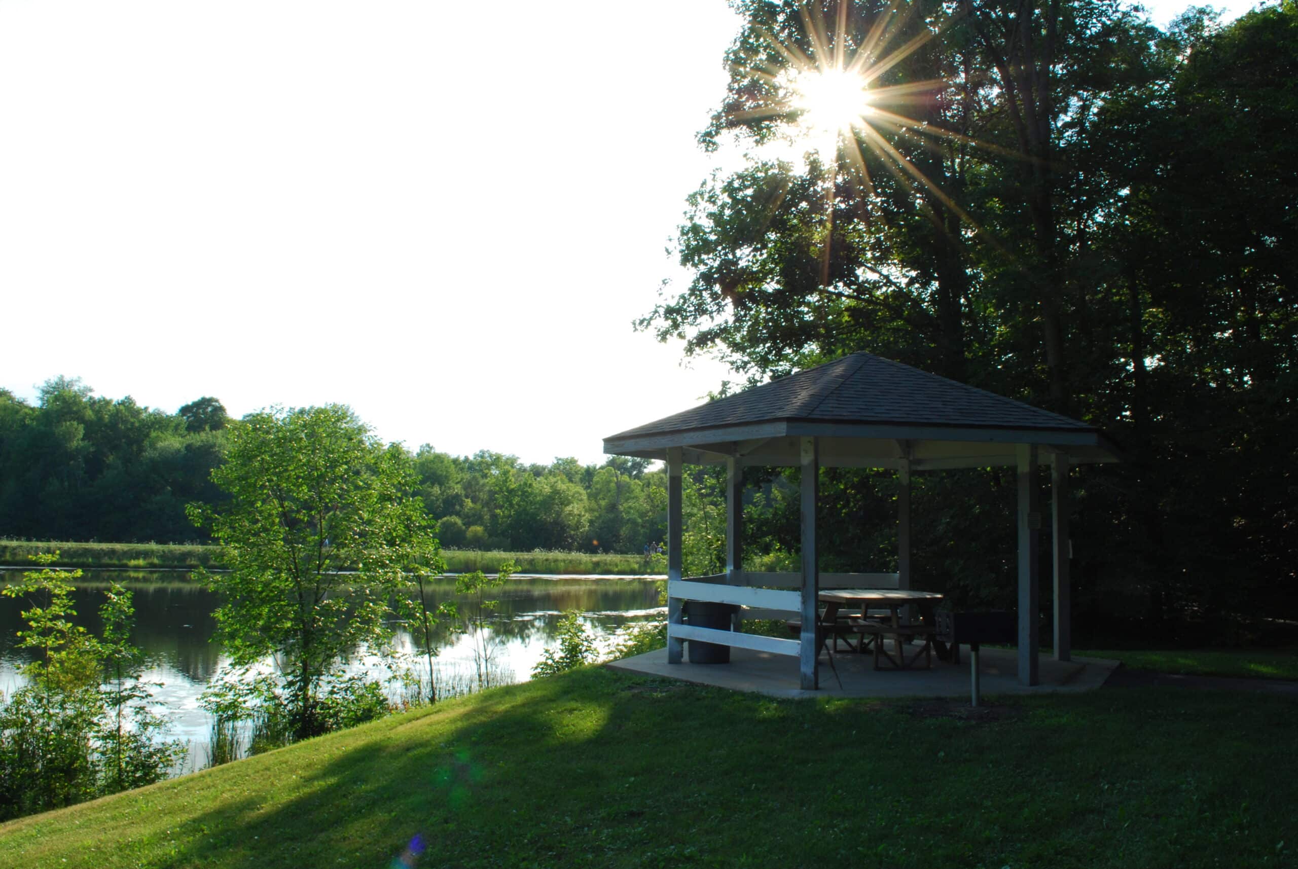 Minnow Shelter can host up to 75 people and offers 6 picnic tables, electrical outlets, a grill and nearby vault-style restrooms.