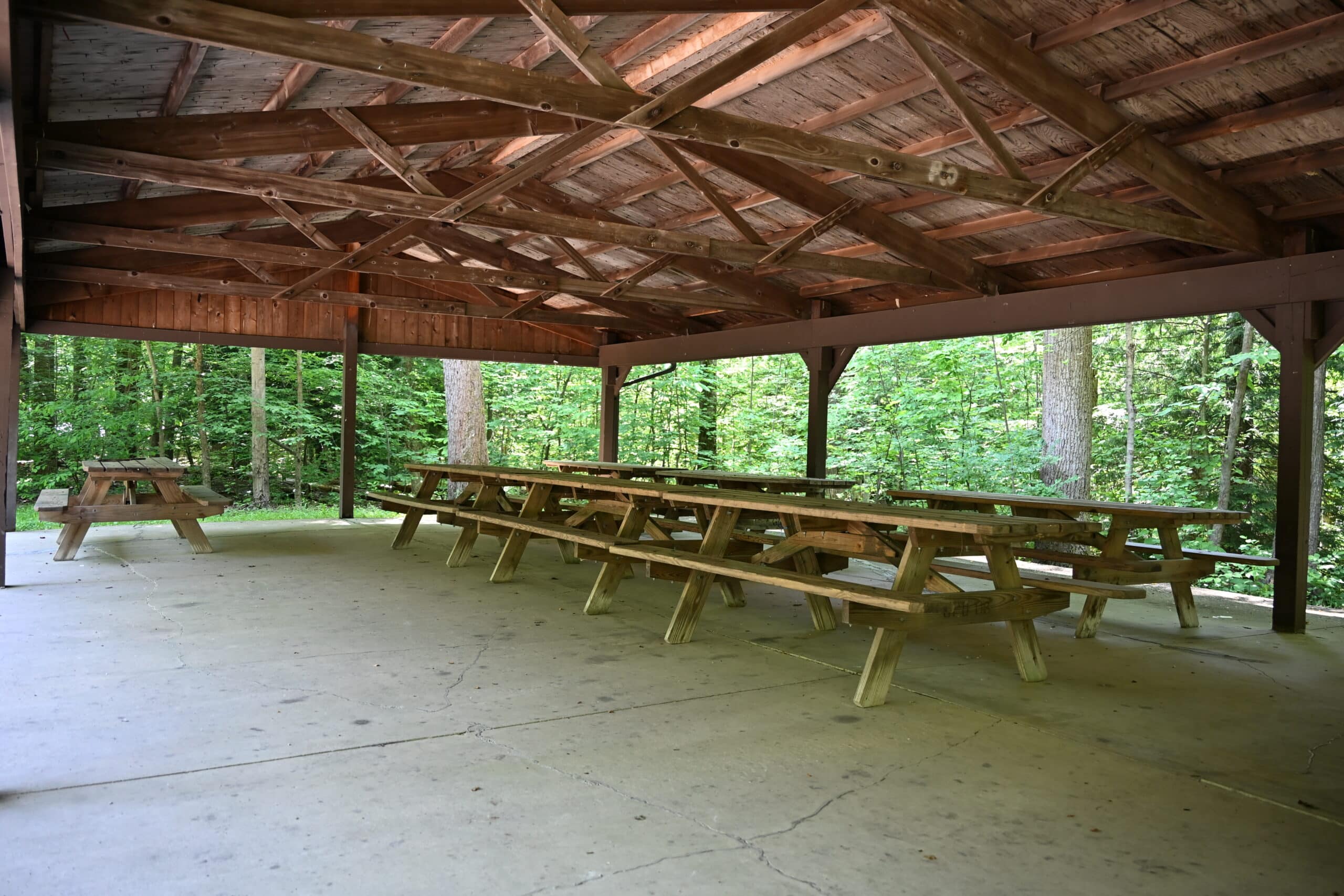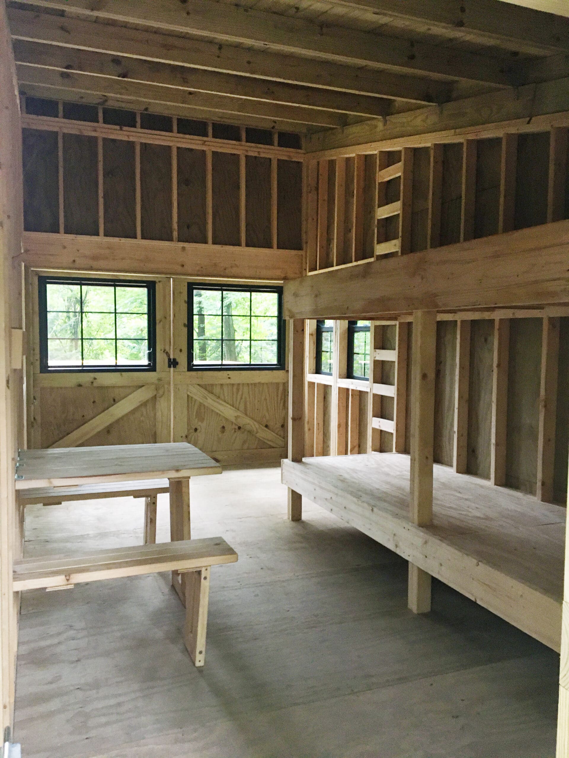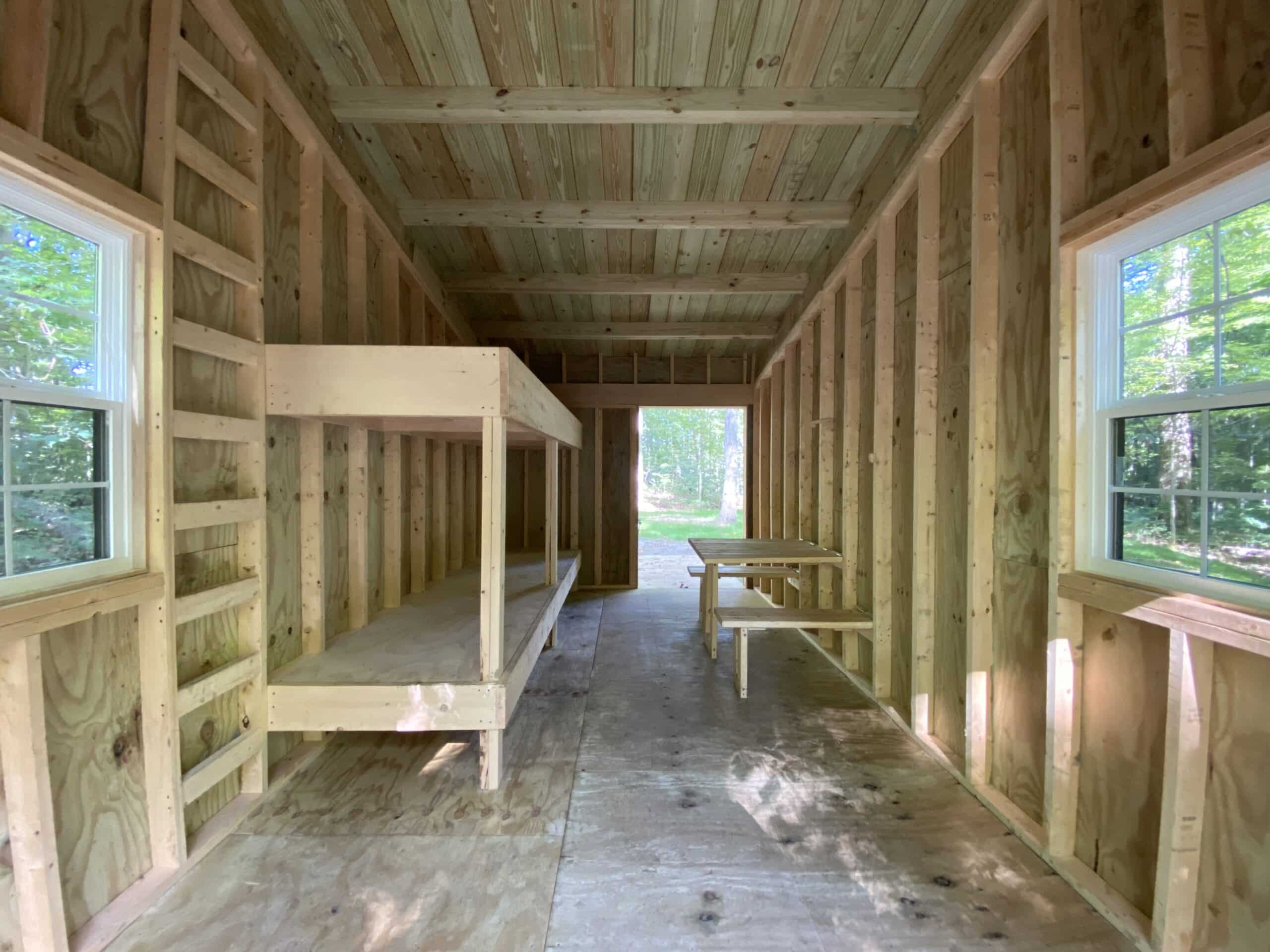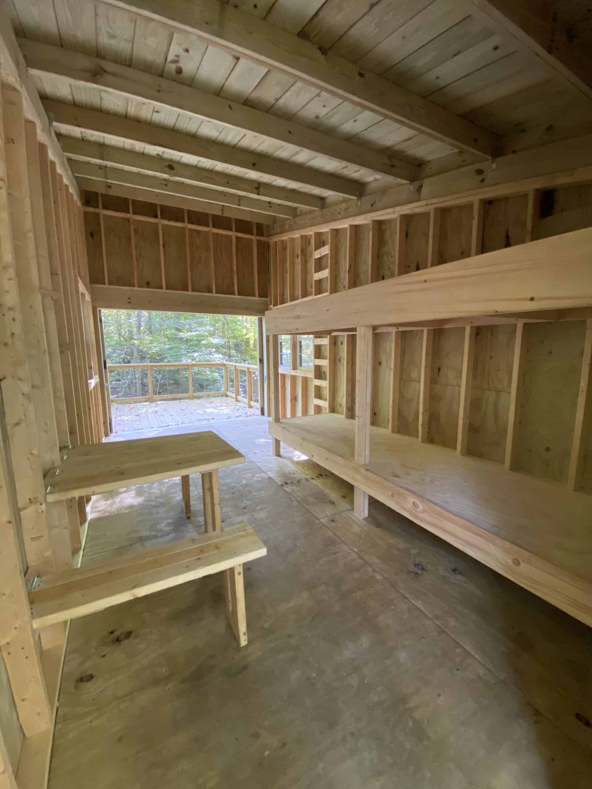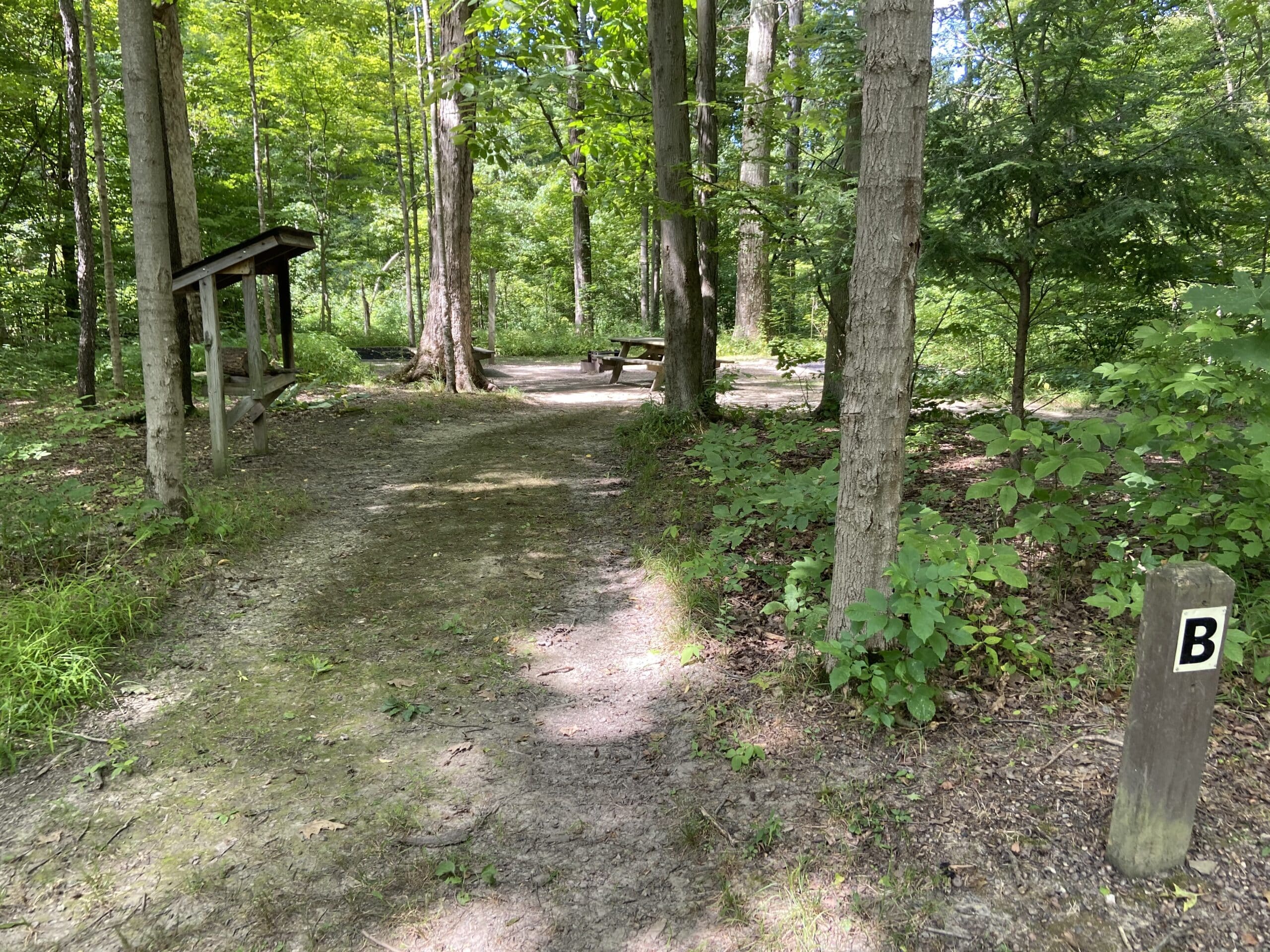 Big Creek Park’s Campsite C contains one 10′ x 12′ lean-to structure which typically accommodates up to 5 people. There is no provision for setting up a tent on this site. Campers must bring their own bedding as the interior has a wooden deck for sleeping.