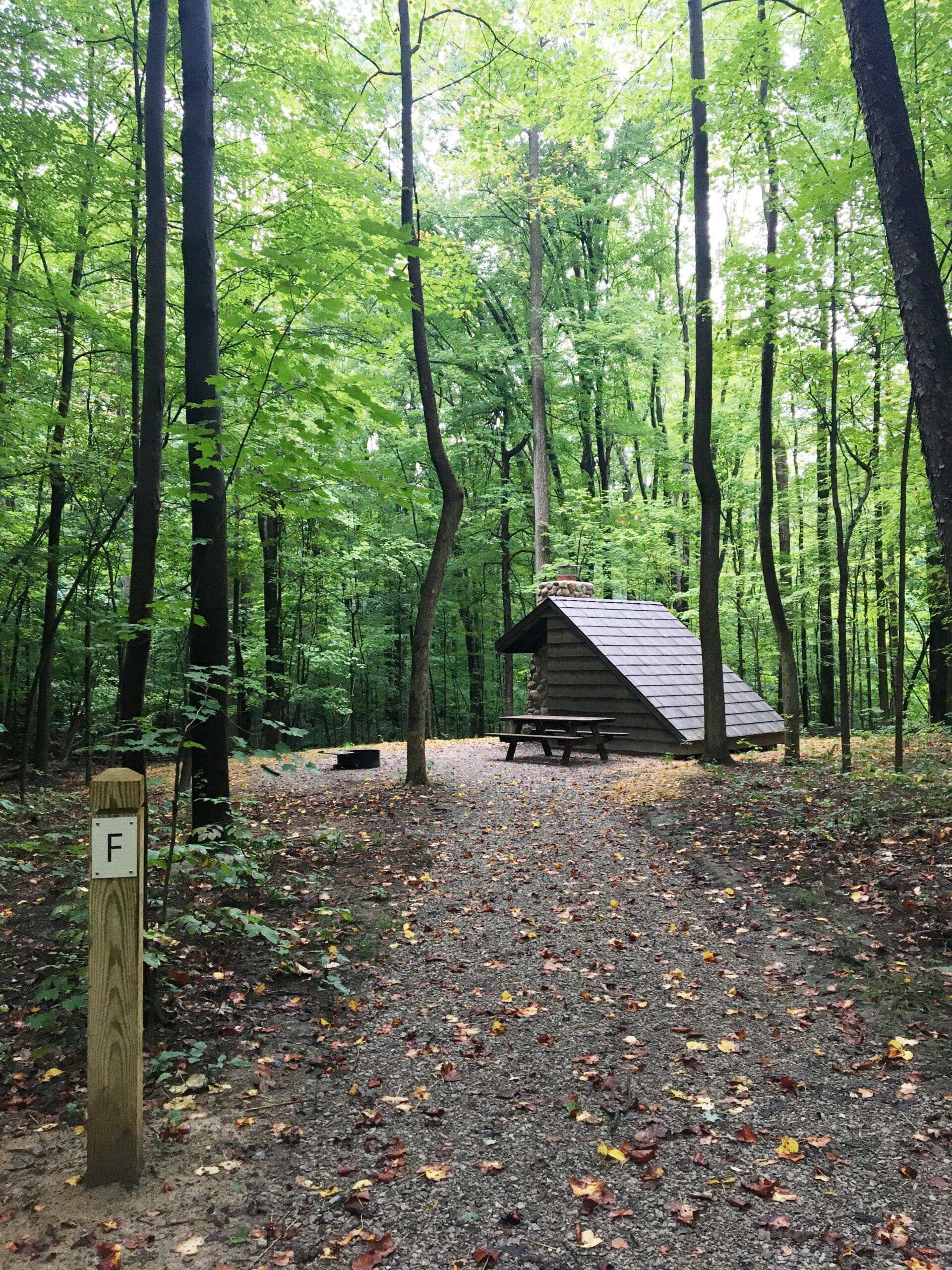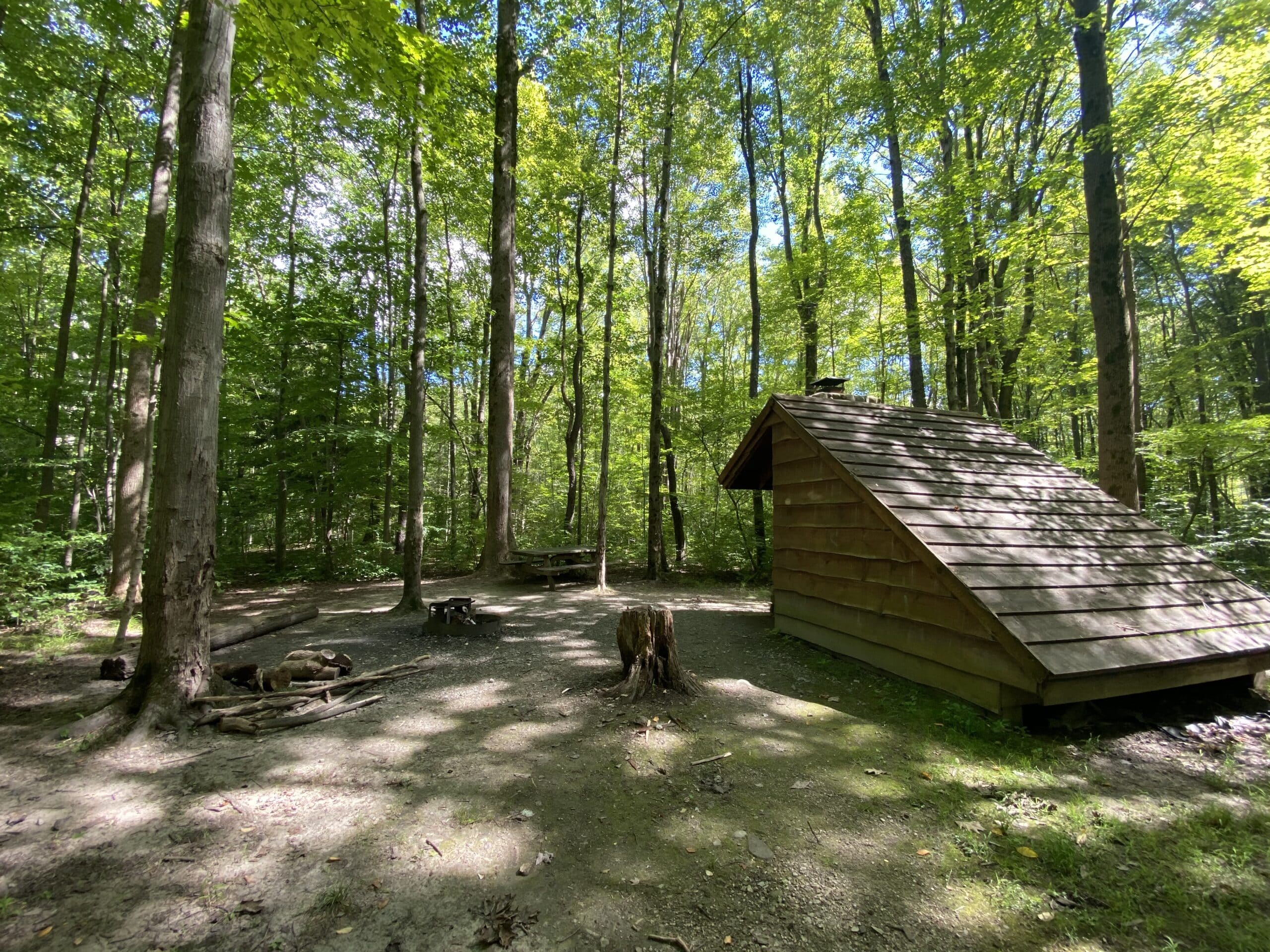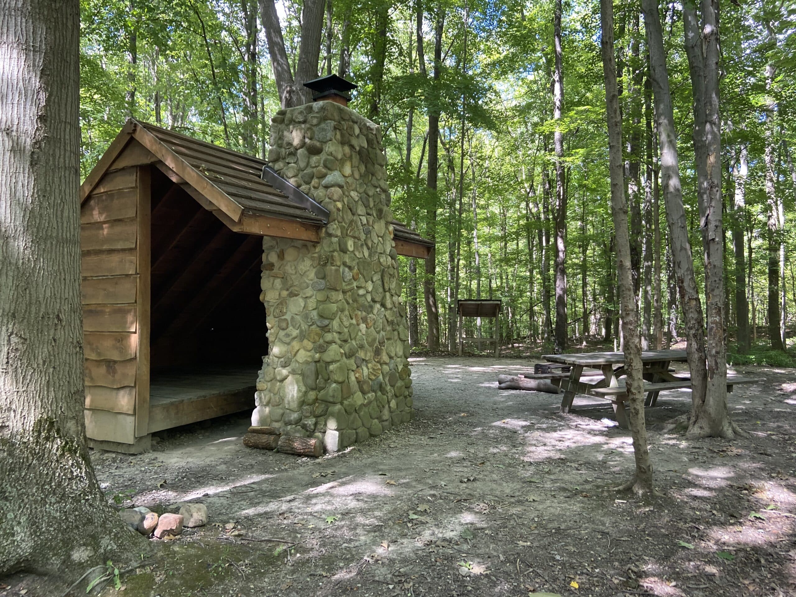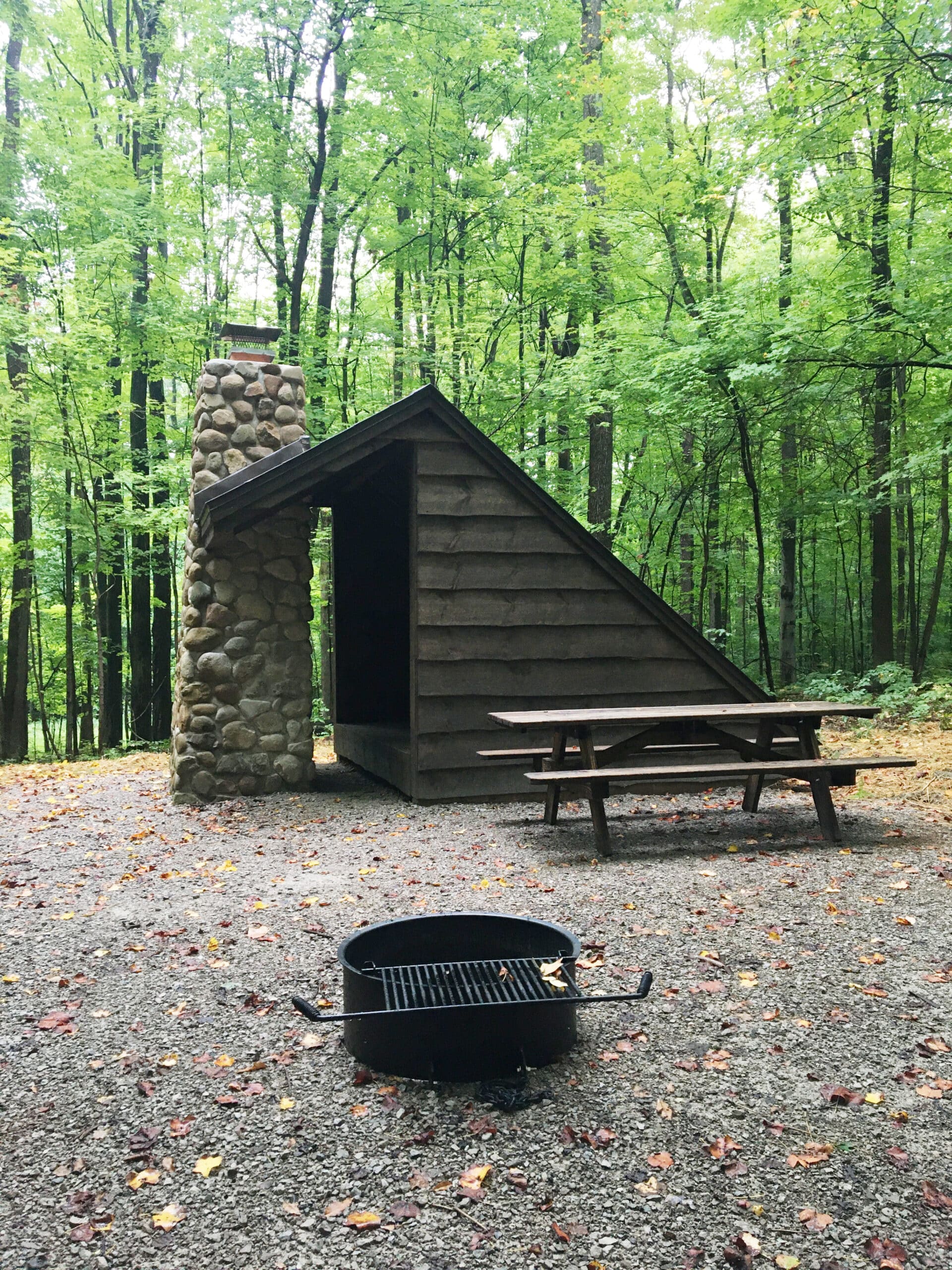 A picnic table and a fire ring with grate are also provided. Cooking must be done in the fire ring; the lean-to fireplace is to be used for warmth only.