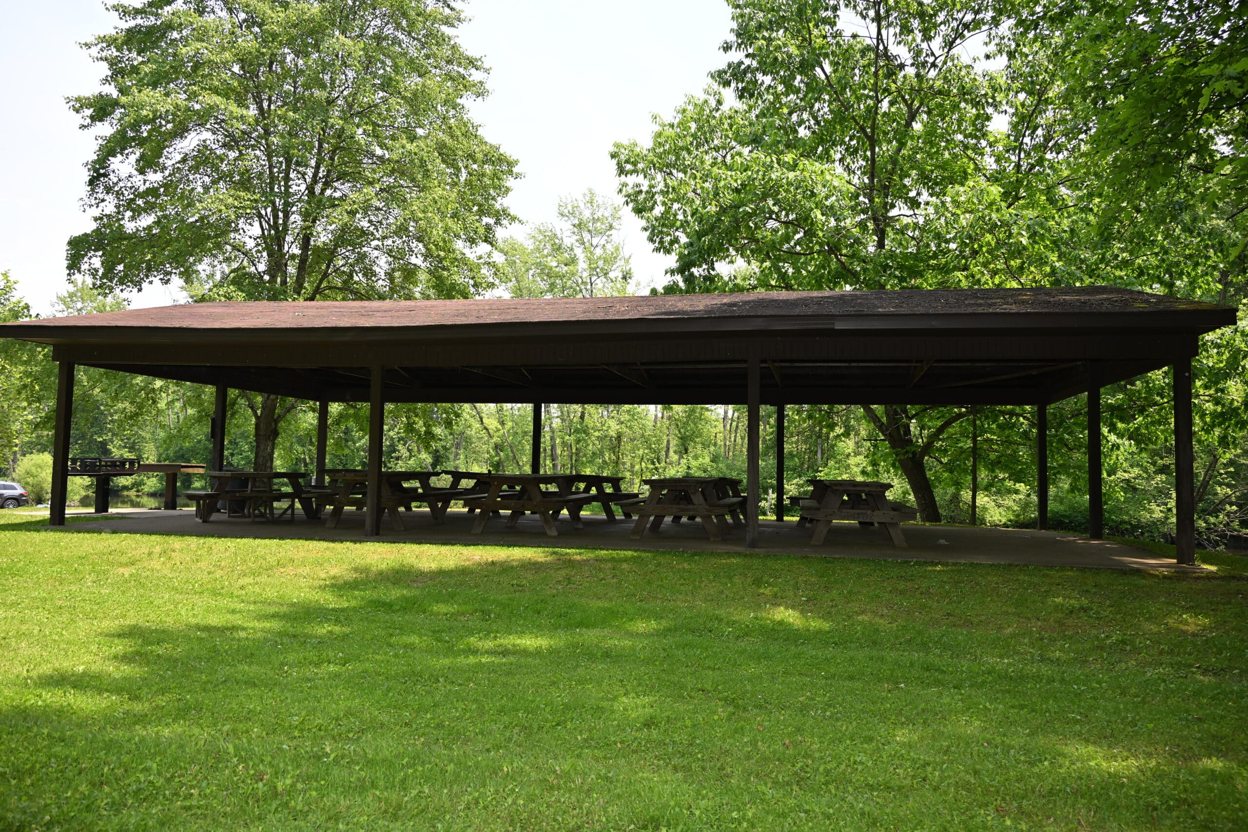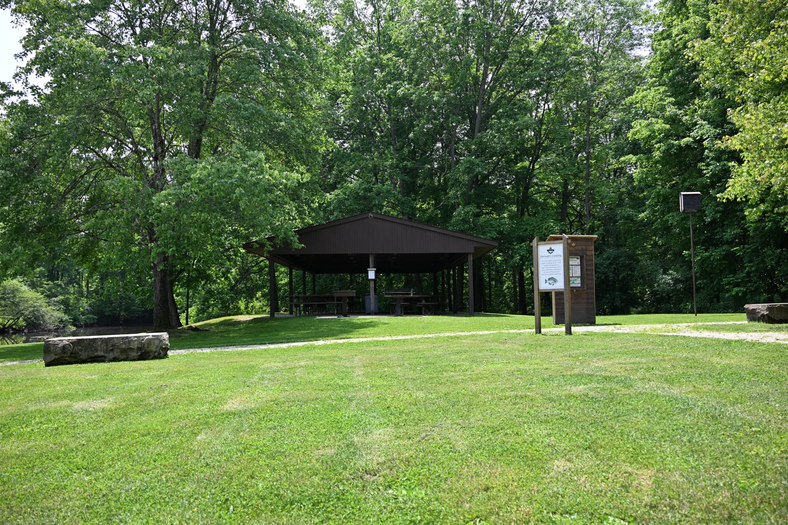 Horwath’s Landing Shelter can host up to 150 people and offers 10 picnic tables, a grill, and nearby vault-style restrooms. There is no electricity at this location.